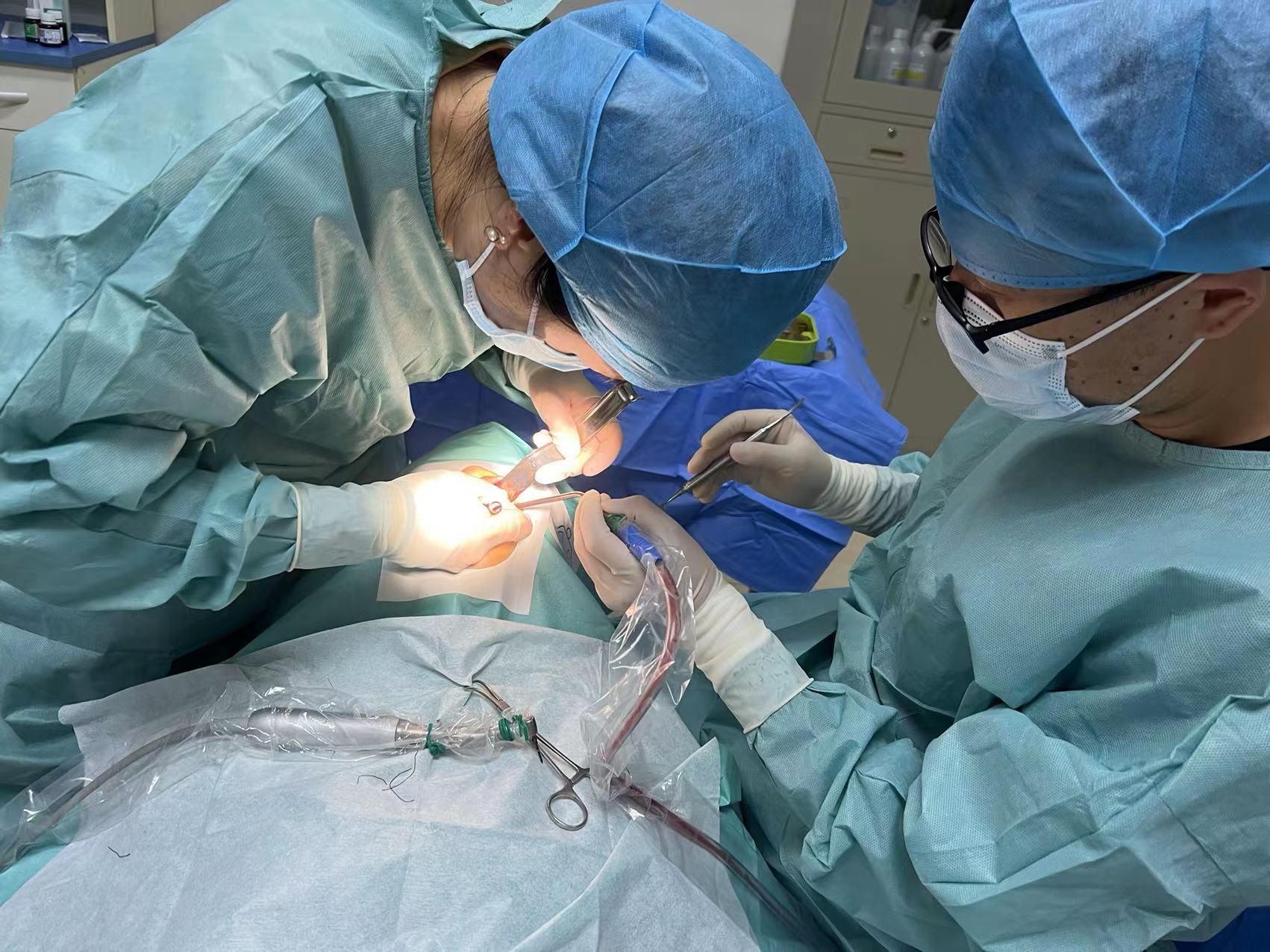 為了避免患者在炎熱的夏季來回奔波,口腔科高艾玲主任團(tuán)隊決定為病人一次性種植三顆缺失的牙齒。辛璐醫(yī)生告訴患者,將通過牙科手術(shù)將人工牙根植入牙槽骨內(nèi),然后將牙齦縫合,大約10天左右拆線,之后等待骨愈合后進(jìn)行二期手術(shù)。