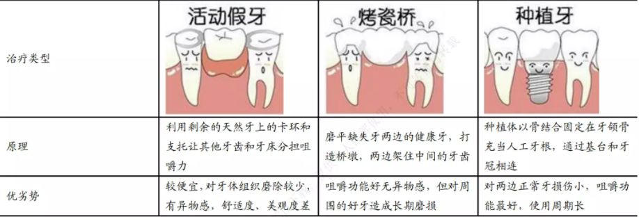 牙齒缺失的不同調(diào)節(jié)方案 資料來(lái)源:健康界