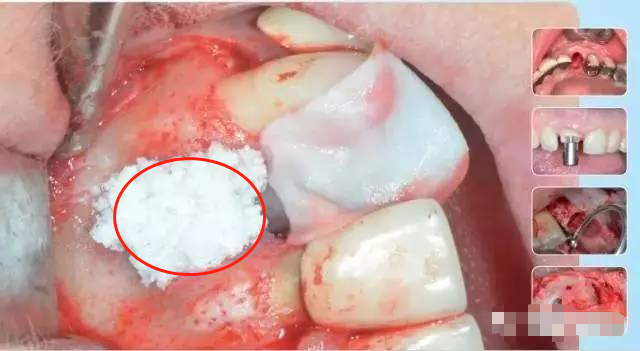 就是將口腔專用的骨粉骨粒植入牙創(chuàng)口,在面上再覆蓋一層可吸收膜,從而達(dá)到修復(fù)牙槽骨的作用。