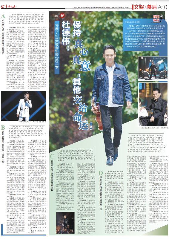 帶著這份好奇,羊城晚報記者前往長沙探班,專訪了被張學友、梁朝偉異口同聲稱贊為“”的杜德偉,聽他講述自己對節(jié)目的所思所感、對舞臺的熱愛執(zhí)著、對親情的依賴眷戀和對世事的從容態(tài)度。