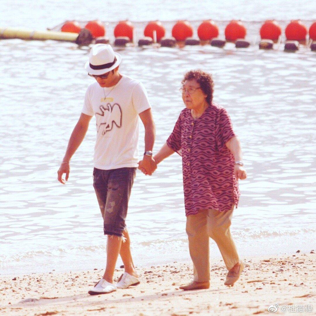杜德偉與母親散步舊照