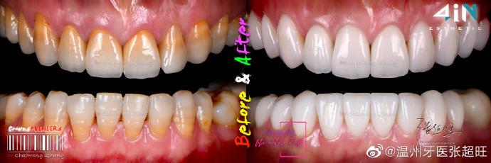 瓷貼面+全瓷冠美學(xué)修復(fù)前后對比。牙齒美白,還有很多不損害牙齒的有方法。/@溫州牙醫(yī)張超旺