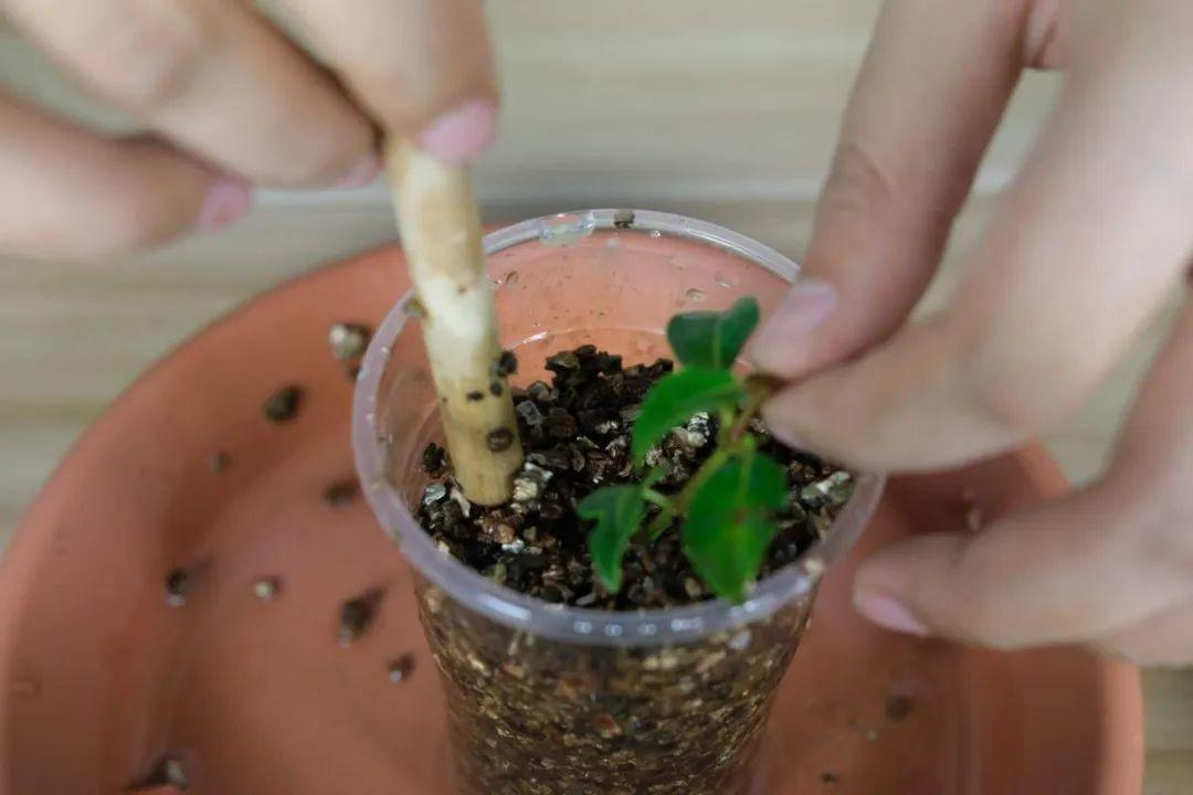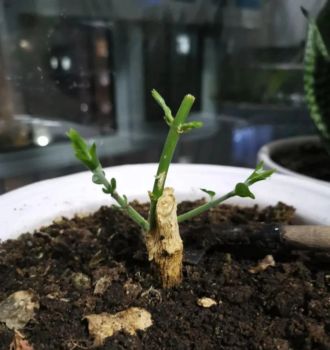 同時,我們要剪掉花和花苞及一半的葉片,種下后澆透水,放散光的地方,增加濕度,讓米蘭慢慢緩苗,等新芽長出來,就說明米蘭成活了!