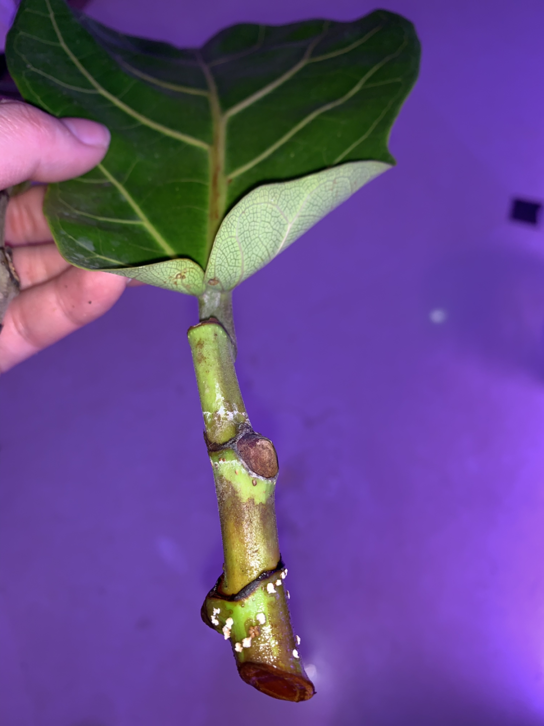 如果琴葉榕是獨桿,直愣愣只往上長不分支,可以趁春天給它打頂,砍完后剩下的桿子,把葉片都摘掉,然后放在光照好的地方使勁曬,溫度合適,大概1周左右桿子上就出小芽啦!小芽長出來,可以留著頂部健壯的,養(yǎng)成棒棒糖!