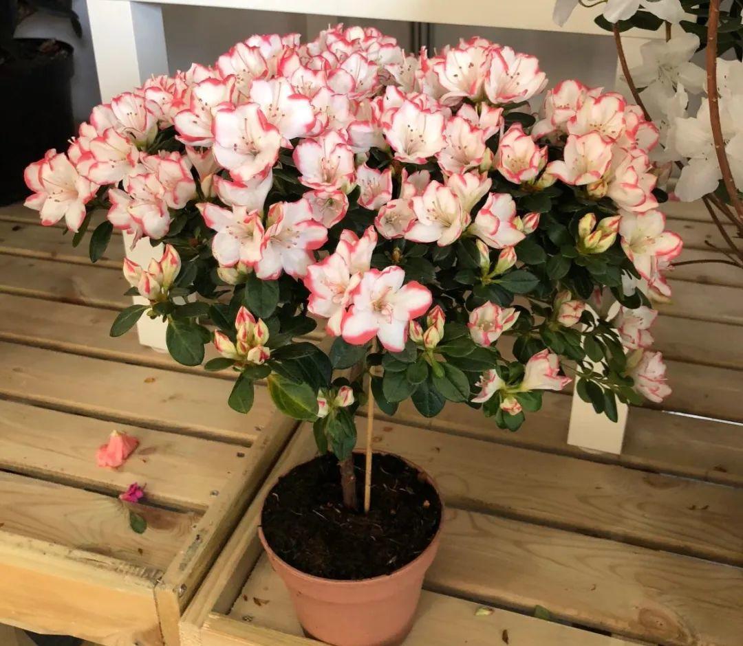 另外,養(yǎng)杜鵑不宜用大盆,好選擇用透氣的塑料盆、加侖盆、陶土盆、愛麗絲花盆,尤其是加侖盆和愛麗絲盆,底部有很多底孔,透氣瀝水功能,根不容易爛,還長得特別旺。