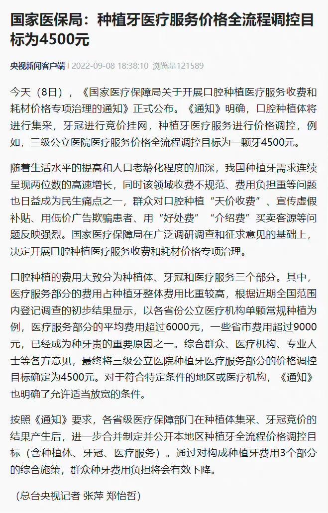 【醫(yī)保局發(fā)布關(guān)于開展口腔種植醫(yī)療服務(wù)收費和耗材價格專項治理的通知】#圍繞種植牙全流程做好價格調(diào)控工作《醫(yī)療保障局關(guān)于開展口腔種植醫(yī)療服務(wù)收費和耗材價格專項治理的通知》正式發(fā)布。