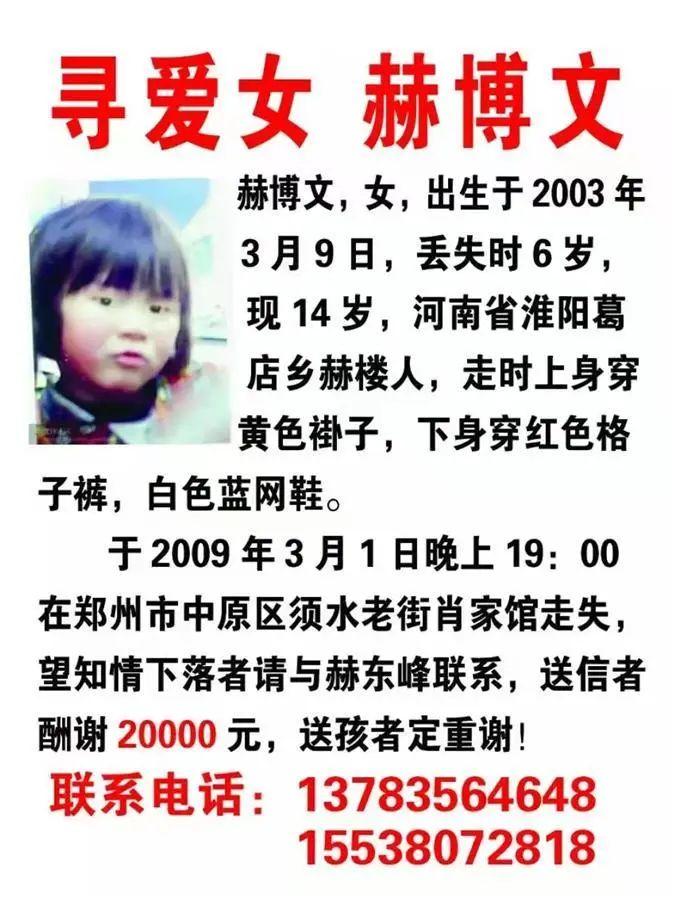 女兒走丟后,盧麗整日以淚洗面,看店時(shí)也是神情恍惚,經(jīng)常忘了收錢(qián),也時(shí)常找錯(cuò)錢(qián)。她和丈夫打印了兩三萬(wàn)張尋人啟事,四處散發(fā),尋人啟事上的赫博文留著短發(fā),撅著嘴望著前方,很是可愛(ài)。