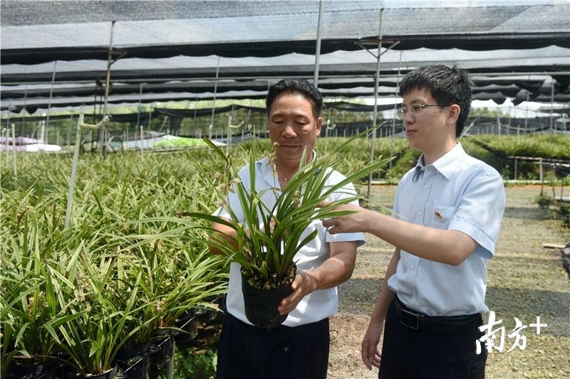 在鄔國良巡查田間的同時,龍門縣龍?zhí)镦?zhèn)李洞村的貧困戶梁仙和其他工人一道,為龍門縣蘭花產(chǎn)業(yè)園搭建培育蘭花的架子。而在另一側(cè),一盆盆蘭花已經(jīng)開花,花盆高出地面50厘米,以便遠(yuǎn)離濕氣和蟲害,擺放得整整齊齊。