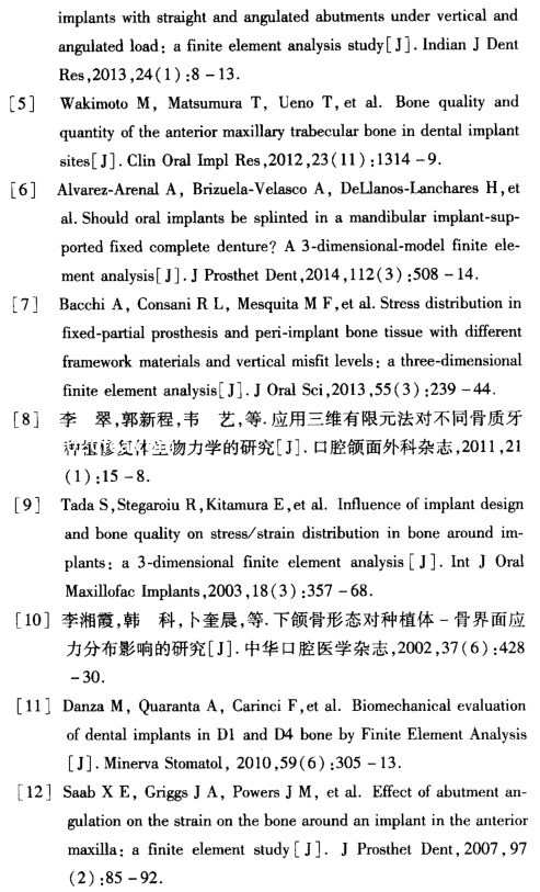 關鍵詞傾斜種植;不同質量頜骨;應力分析;三維有限元