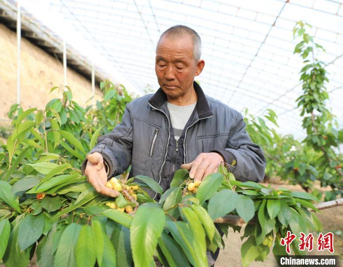 圖為在河北省固安縣儂人農(nóng)業(yè)園溫室大棚內(nèi),社員正對(duì)櫻桃進(jìn)行管理。 門叢碩 攝