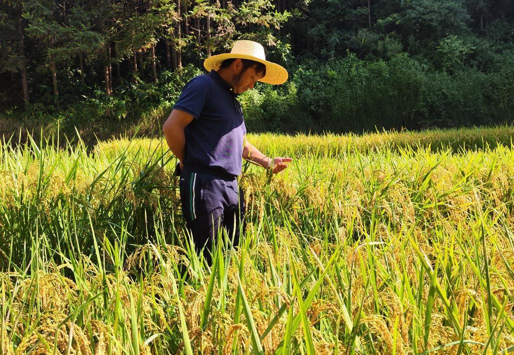 云南大學(xué)教授胡鳳益在田間觀察多年生稻長勢。(受訪者供圖)