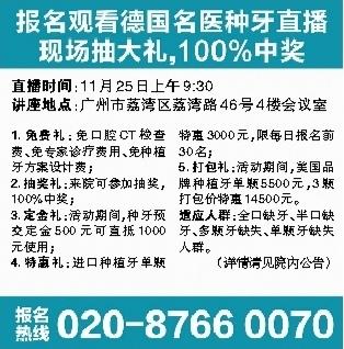 為節(jié)省市民寶貴預約時間,歡迎提前致電預約觀看種牙直播熱線020-87660070。