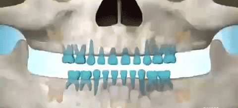 圖:換牙時(shí)乳牙、恒牙移動(dòng)示意圖