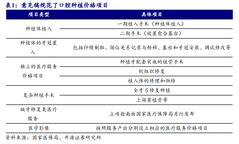 種植牙服務(wù)分為牙種植體、修復(fù)材料、牙冠規(guī)模、基臺(tái)、服務(wù)及其他。開(kāi)源證券分析師蔡明子8月21日發(fā)布的研報(bào)指出,《意見(jiàn)稿》對(duì)種植牙價(jià)格實(shí)行“技耗分離”,同時(shí)體現(xiàn)技術(shù)勞務(wù)價(jià)值。價(jià)格變化上看,群眾反映強(qiáng)烈、費(fèi)用負(fù)擔(dān)重的種植體植入費(fèi)/牙冠置入費(fèi)/植骨手術(shù)費(fèi)以降為主,技術(shù)難度大、風(fēng)險(xiǎn)程度高的項(xiàng)目以及拔牙/牙周潔治/補(bǔ)牙等以技術(shù)勞務(wù)為主的低價(jià)項(xiàng)目調(diào)增價(jià)格。