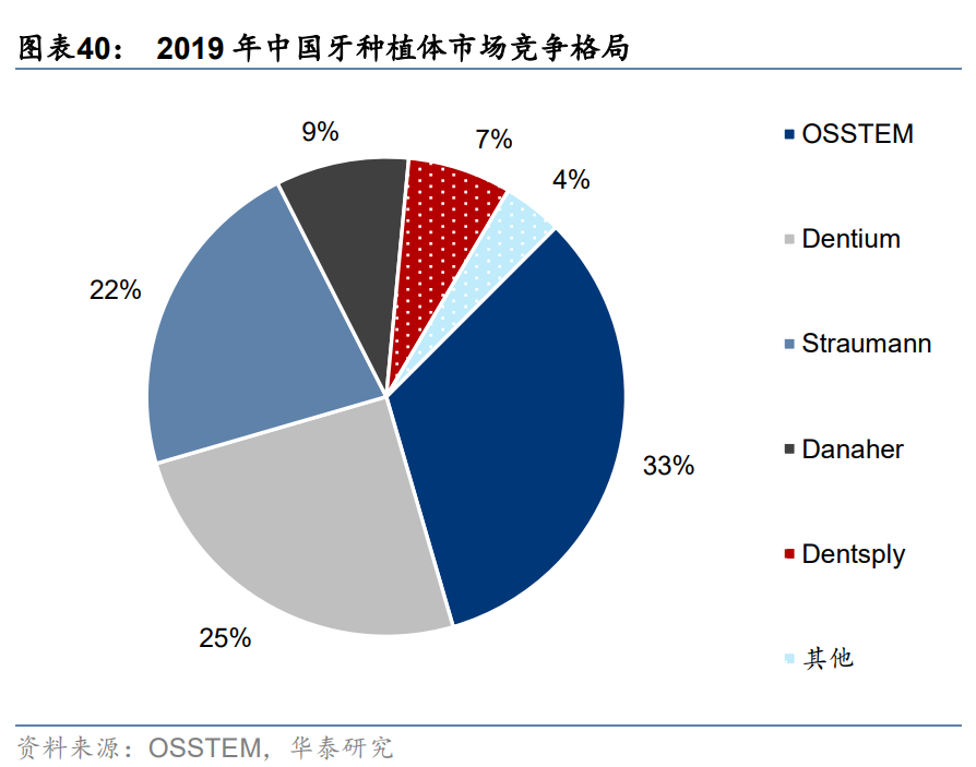 從種植體市場(chǎng)來(lái)看,華泰證券分析師代雯等7月23日發(fā)布的研報(bào)指出,根據(jù)Osstem公司統(tǒng)計(jì),2019年我國(guó)種植體市場(chǎng)以國(guó)外企業(yè)為主,CR5超90%,國(guó)產(chǎn)化率較低。長(zhǎng)期來(lái)看,集采可能會(huì)加快種植體國(guó)產(chǎn)替代速度。