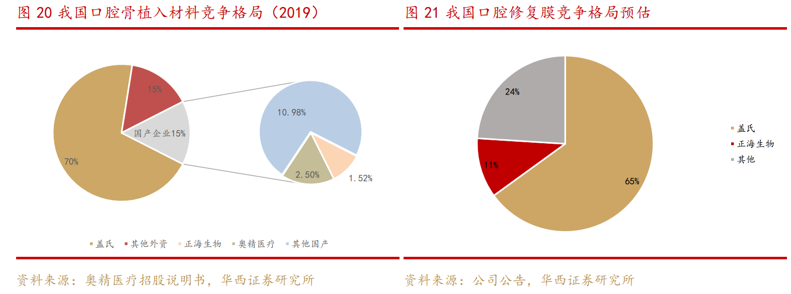從口腔修復(fù)材料市場(chǎng)來(lái)看,華西證券分析師崔文亮5月11日發(fā)布的研報(bào)指出,我國(guó)口腔修復(fù)材料市場(chǎng)瑞士蓋氏占據(jù)優(yōu)勢(shì)地位,市占率約在70%左右,以正海生物為主的國(guó)產(chǎn)企業(yè)由于品牌粘性、市場(chǎng)教育、銷(xiāo)售讓利等因素暫居后位,集采驅(qū)動(dòng)下將加速更具性?xún)r(jià)比優(yōu)勢(shì)的國(guó)產(chǎn)企業(yè)市場(chǎng)份額進(jìn)一步擴(kuò)大。國(guó)金證券分析師袁維等9月5日發(fā)布的研報(bào)也認(rèn)為,正海生物口腔修復(fù)膜業(yè)務(wù)有望隨著種植牙全國(guó)集采快速放量。