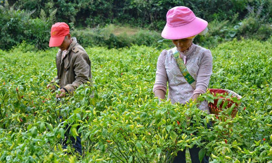 圖為五山鄉(xiāng)覓利村的種植戶在采摘小米辣(趙樹龍 攝)
