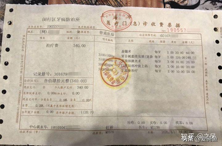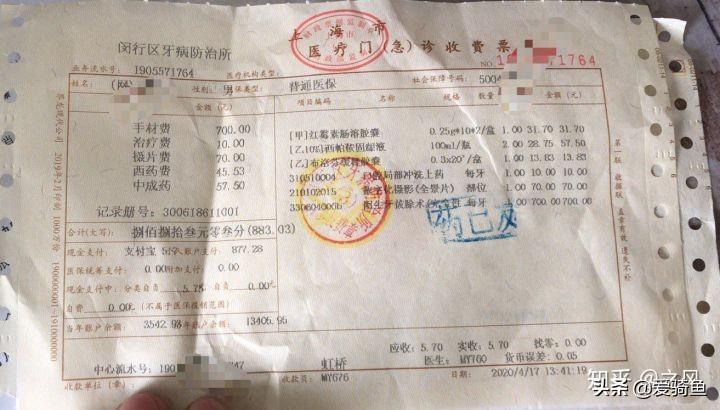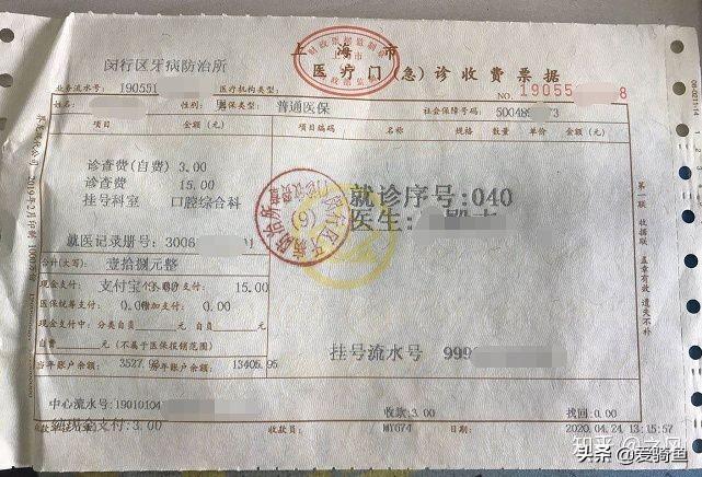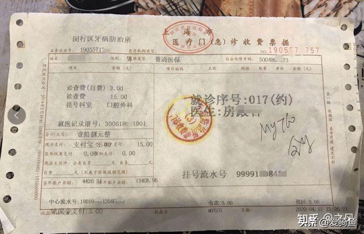 概述2020年04月17日下午13點(diǎn)30分到達(dá)閔行區(qū)牙病防治所,拍片、打麻藥、拔牙完事。 打麻藥可能等個(gè) 三四分鐘,拔牙感覺(jué)也就一兩分鐘。 總費(fèi)用 901.03 = 883.03 + 18 掛號(hào)費(fèi),其中自費(fèi) 5.7¥+3¥(掛號(hào)費(fèi)) 總體感覺(jué):拔牙速度挺快,態(tài)度一般(現(xiàn)在醫(yī)生估計(jì)都一樣,沒(méi)有態(tài)度很好的,見(jiàn)得病人太多) 攜帶資料:手機(jī)(各種掃碼)、醫(yī)保卡、上海市基本醫(yī)療保險(xiǎn)-門急診就醫(yī)記錄冊(cè)(沒(méi)有不能用醫(yī)保)資料: