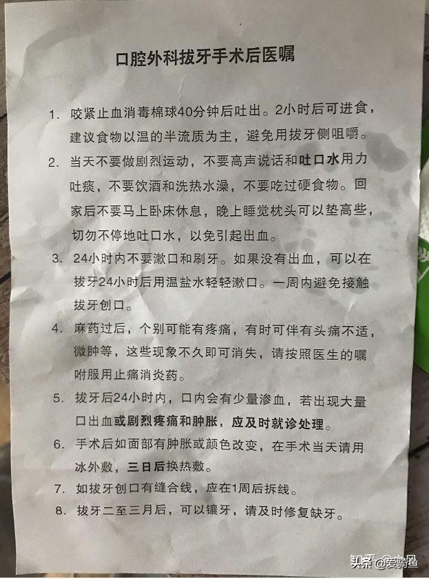 口腔外殼拔牙手術(shù)后醫(yī)囑