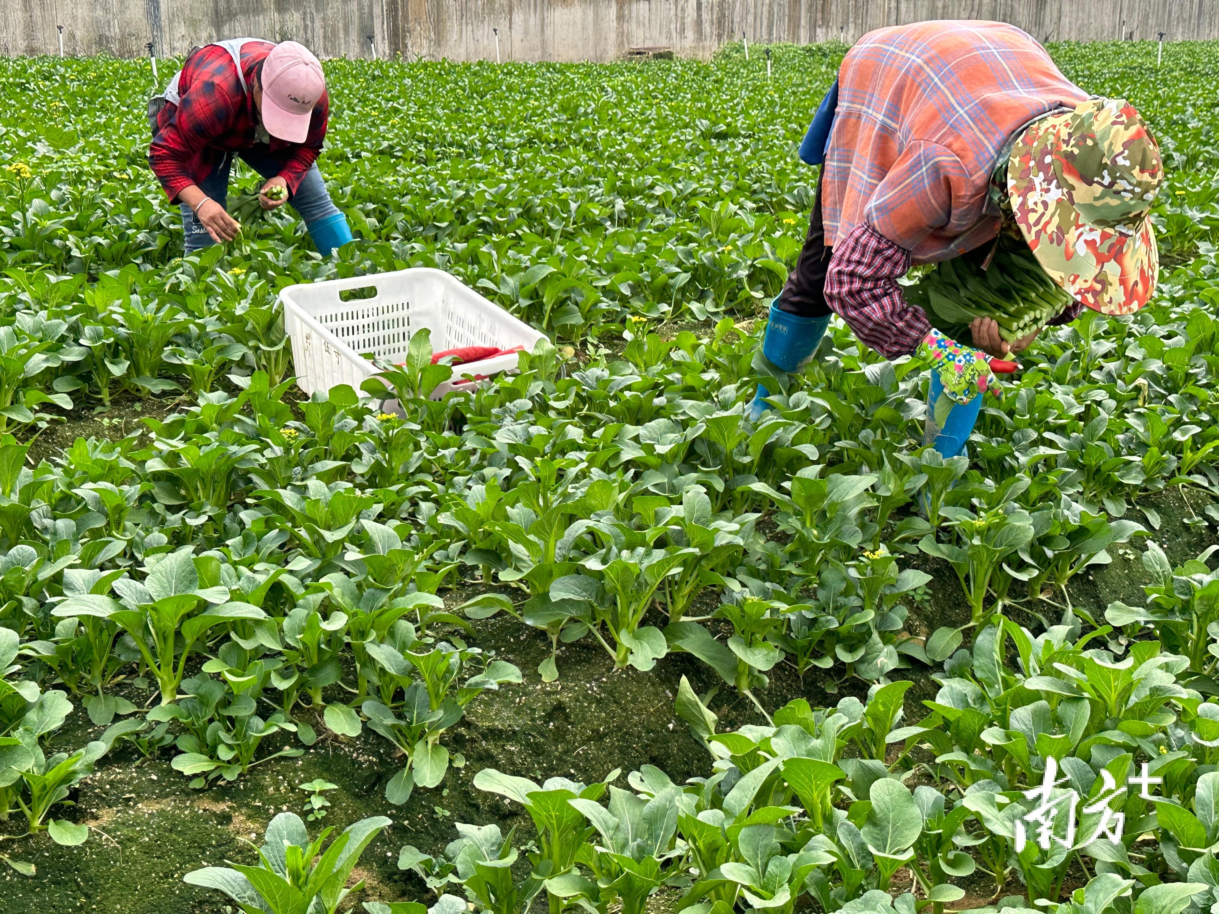 穩(wěn)產(chǎn)能,面積是基礎。據(jù)張海波介紹,去年鴻錦供港蔬菜基地種植總面積3300畝,得益于粵港澳大灣區(qū)的消費需求增加,今年基地又將擴種280畝?!盀榱颂嵘卟说墓芰?,基地已靠前準備冬種,品種除了菜心、芥藍,還有冬天才能種植的豌豆苗。預計今年冬季至明年春季期間可以供應5400噸各類蔬菜?!?/p>