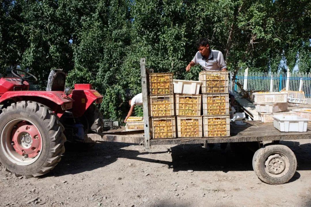 運輸鏈路的“保鮮戰(zhàn)”今年采摘季,在尤喀克臺賽克村合作社里,每天都有數(shù)十位村民在現(xiàn)場分揀和搬運杏子,從早上7點勞作至凌晨1點半,以當(dāng)日摘下的杏子可以在當(dāng)天就全部分類裝車,運送到供銷社和客商手中。