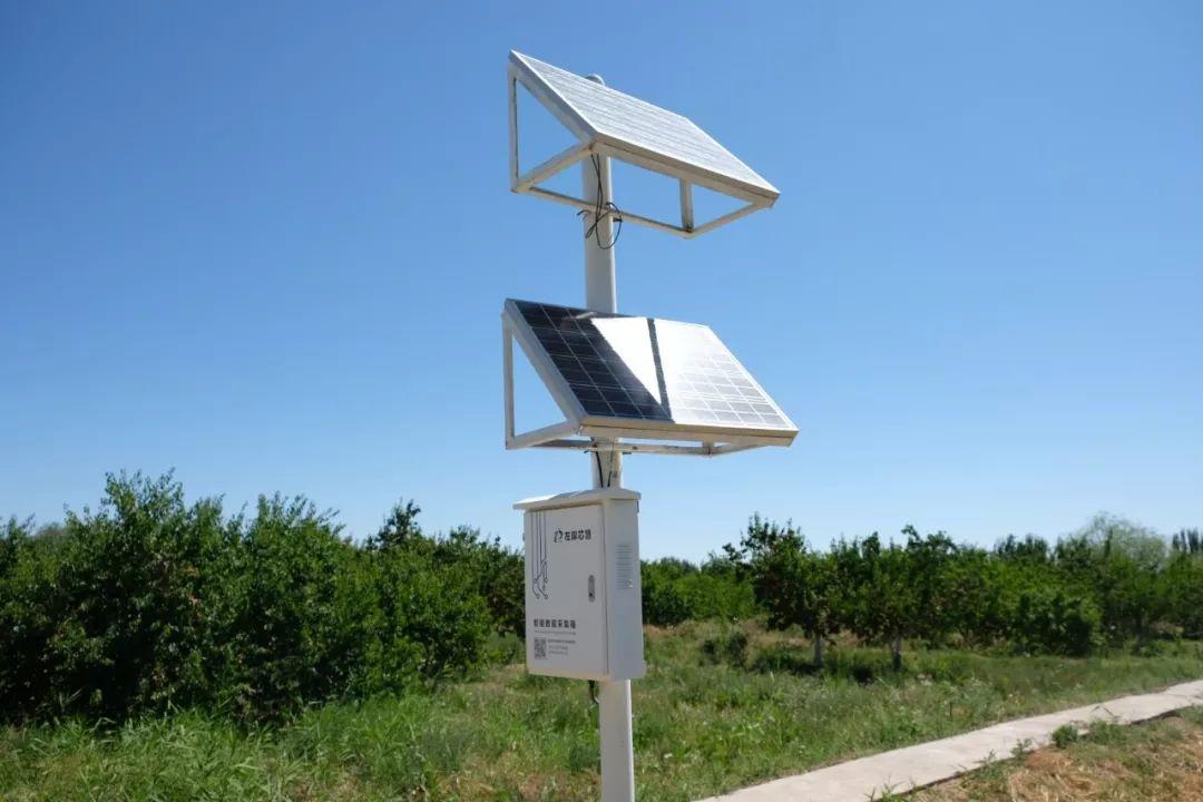 在示范基地里,英吉沙杏從開花到坐果,包括有機肥使用、修剪方式等日常田間管理都有詳細(xì)的規(guī)范化標(biāo)準(zhǔn)。在郁郁蔥蔥的果園里,多個氣候數(shù)據(jù)智能物聯(lián)網(wǎng)傳感器立于杏林之間,它們可收集果園光熱水土實時數(shù)據(jù),拍攝的林果生長畫面。
