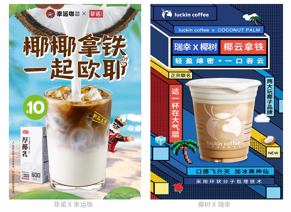 三是通過(guò)公關(guān)軟文、跨界聯(lián)名等方式,借由客戶或合作伙伴的評(píng)論、分享、二次傳播、口碑傳播塑造用戶的信任,加快購(gòu)買決策。菲諾在今年3月攜手蜜雪冰城旗下咖啡品牌幸運(yùn)咖,聯(lián)合推出新品“椰椰拿鐵”,定價(jià)10元,強(qiáng)調(diào)“平價(jià)而不低端”的產(chǎn)品特點(diǎn)。而本次椰樹(shù)與瑞幸聯(lián)名,也是椰樹(shù)擺脫形象老化,擁抱年輕群體的嘗試。作為椰樹(shù)34年來(lái)的對(duì)外聯(lián)名活動(dòng)本身話題性就極強(qiáng),同時(shí)又正值擁有龐大自有流量池的瑞幸咖啡發(fā)起以#生椰拿鐵1周年紀(jì)念日#的話題互動(dòng)抽獎(jiǎng),自然吸引了大量用戶前來(lái)參與,擴(kuò)大聲量,增加品牌曝光。