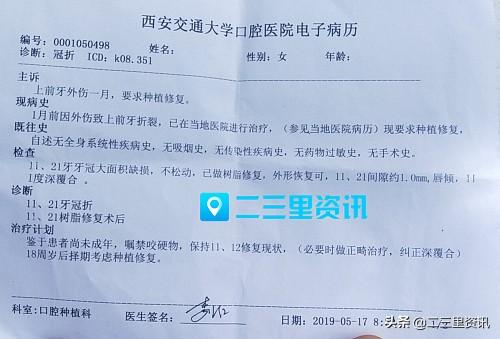 “我在延安了解了下,種植一顆牙齒在1萬3左右,還不包括調(diào)節(jié),拔除定期檢查這些,要治好孩子的牙都得4萬多左右。目前為止我已花費兩千多,孩子在醫(yī)院調(diào)節(jié)期間,校方派班主任張老師及其他工作人員來醫(yī)院讓先給孩子看病,把醫(yī)院票據(jù)這些保存好給學(xué)校,學(xué)校報保險了,后期調(diào)節(jié)保險給賠償1萬,賠償一萬有點少,連孩子半顆牙都治不好,希望校方能承擔(dān)后期調(diào)節(jié)費用。”趙先生說。