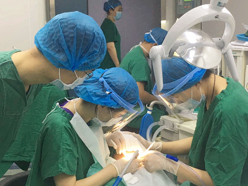 丁彬醫(yī)師和申家麗醫(yī)師正在為小患者進(jìn)行全麻下牙齒調(diào)節(jié)