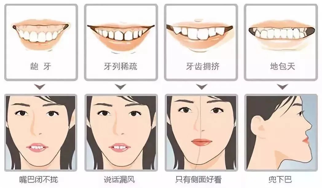 拉低顏值,影響臉型。小鳥(niǎo)嘴,兜下巴……難看的牙齒總是丑得各有千秋;