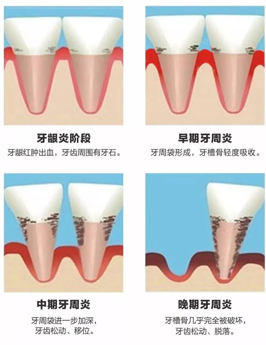 導(dǎo)致牙痛、牙齦出血、牙齒松動(dòng)、脫落。
