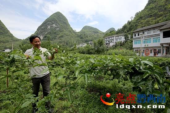 興義市則戎鄉(xiāng)冷洞村村支書朱昌國介紹村里種植的百香果。