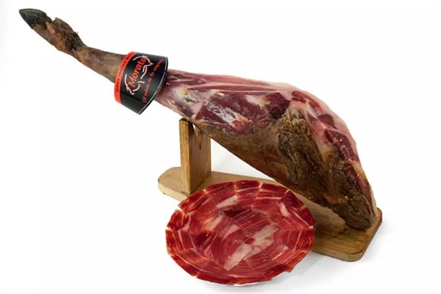 伊比利亞火腿:伊比利亞豬種在橡樹牧場(chǎng)地區(qū)散養(yǎng),食用飼料和牧草長(zhǎng)成。取整只后腿在特殊的微氣候下加工而成。