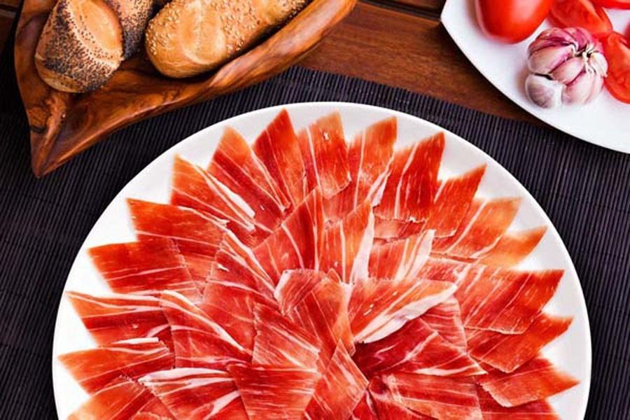上等的西班牙伊比利亞火腿的吃法就是切薄片生吃,現(xiàn)切現(xiàn)吃。火腿食用時(shí),好將切片放在一個(gè)碟子上,但不要裝得過滿,選不同部位的火腿以體驗(yàn)不同的味道。將肉切成幾乎是半透明的薄片后,味道更佳。一片好的切片應(yīng)保持火腿的味道和香氣不變。