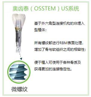 奧齒泰種植體——US系統(tǒng)US系屬于奧齒泰旗下的外連接,也有迷你(M),標準(R4.0~7.0)和寬體(W6.0)之分。