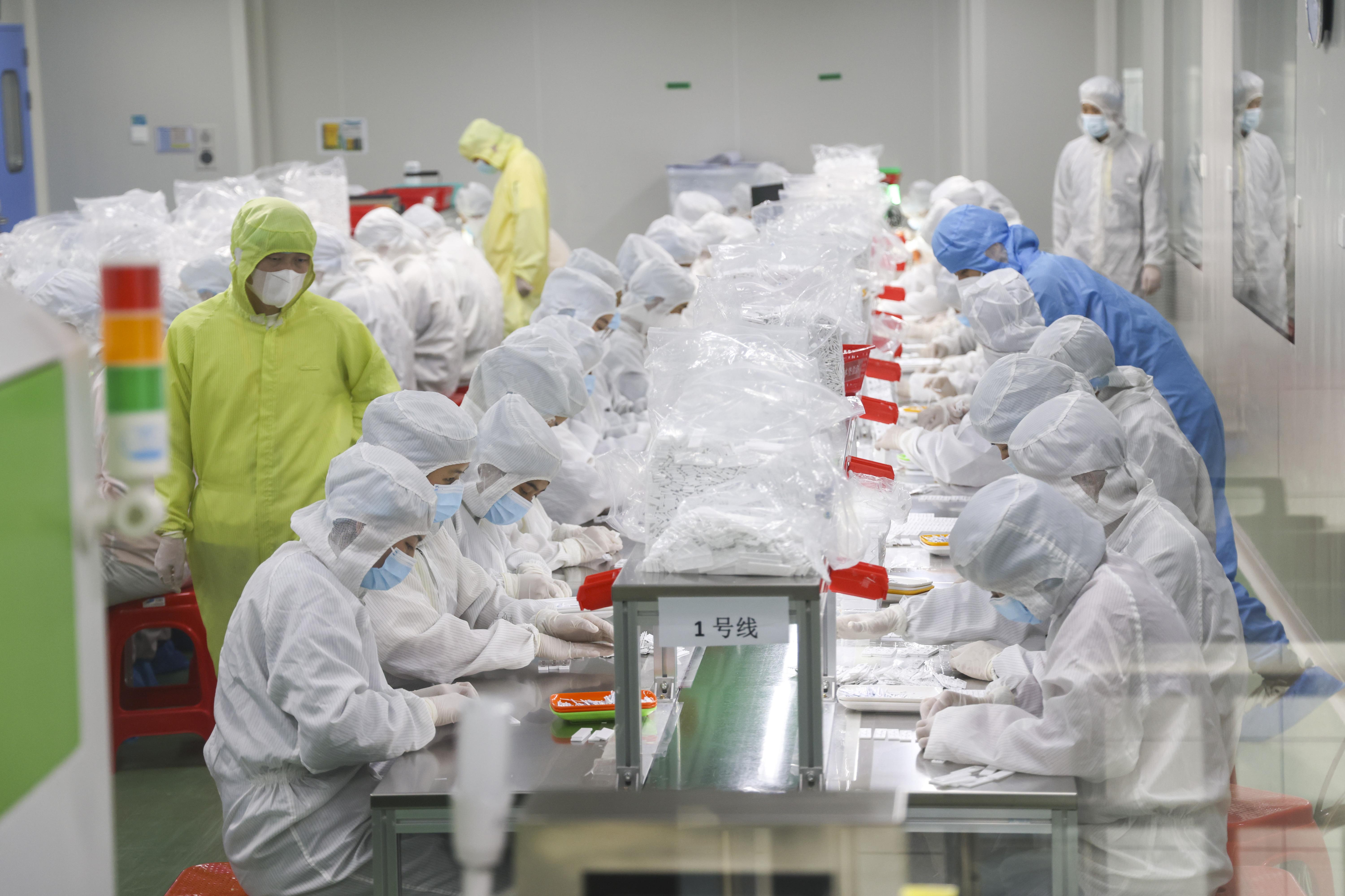 12月21日,深圳企業(yè)亞輝龍生產(chǎn)車間,工人們忙碌不同,正在加快生產(chǎn)新冠抗原檢測(cè)試劑。 南方日?qǐng)?bào)記者 朱洪波 攝