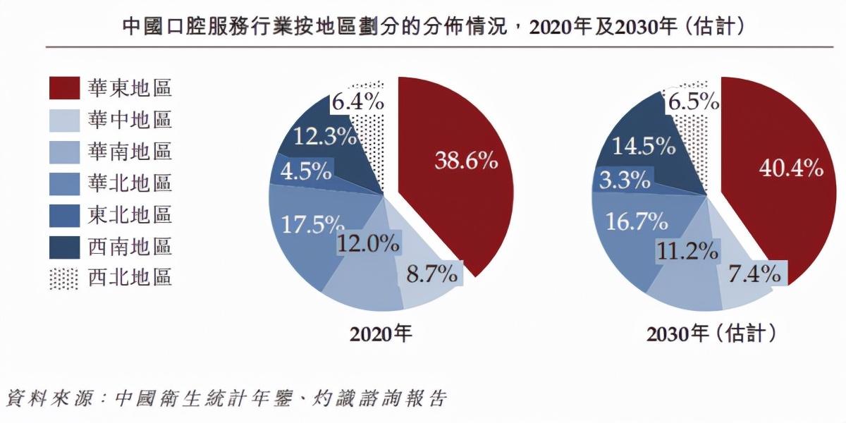 根據(jù)灼識咨詢報告,作為經(jīng)濟具活力的地區(qū),2020年華東地區(qū)占全國口腔服務市場近39%的份額,預計華東地區(qū)口腔服務行業(yè)的市場規(guī)模以復合年增長率近13.0%的速度增長后,到2030年將達約人民幣2125億元,為中國具發(fā)展?jié)摿Φ目谇环帐袌觥?/p>