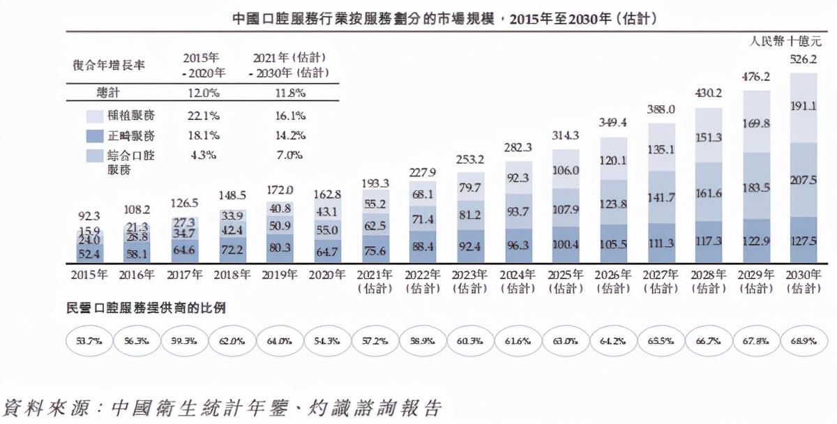 灼識咨詢報告顯示,行業(yè)規(guī)模由2015年的923億元增加至2020年的1628億元,年復合增長率為12%,預計到2030年行業(yè)規(guī)模將達到5362億元。
