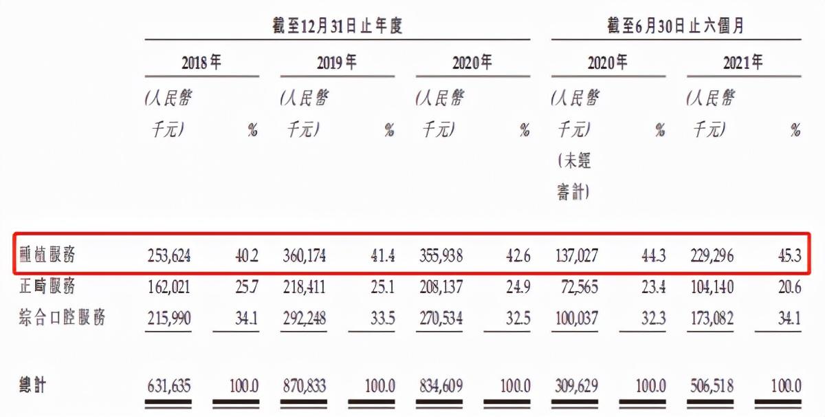 其中,種植服務是牙博士主要的收入來源。