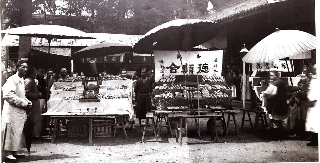 清朝末年青羊?qū)m廟會內(nèi)的臨時貨攤