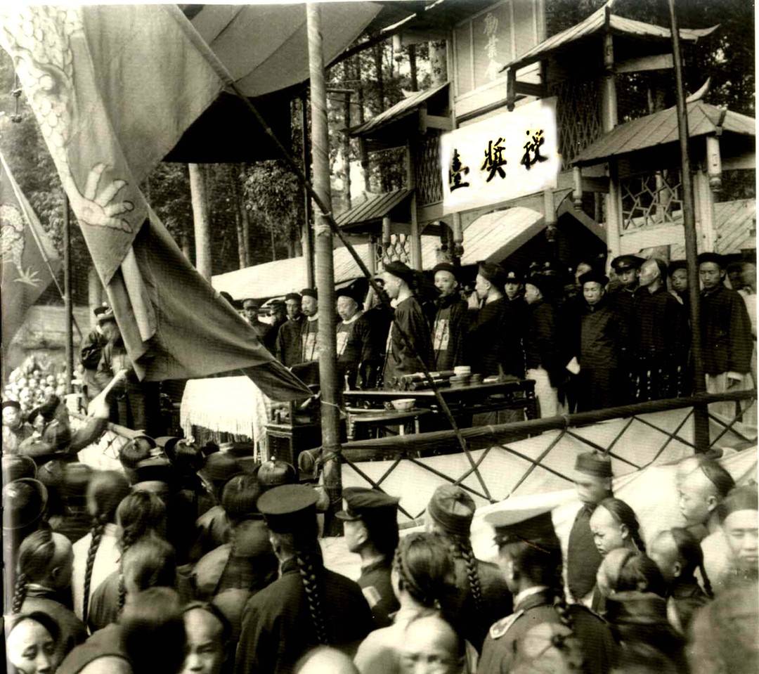 清朝官員們在青羊?qū)m廟會“授獎臺”上頒獎 攝影:[美國]路得?那愛德