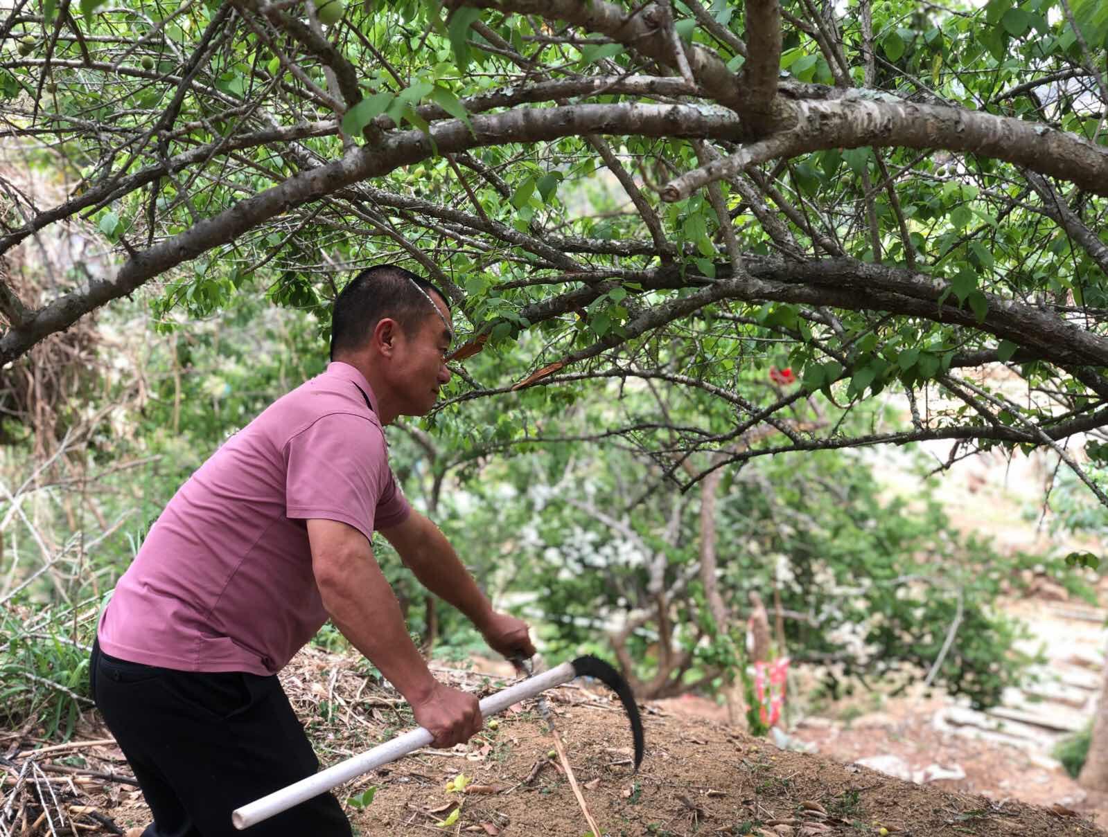 人間美四月天,又是青梅成熟時(shí)。蘇林社區(qū)的農(nóng)戶李山伯一如往常來到自家的的青梅果園清理雜草,照料果樹。李山伯種植青梅已經(jīng)40多年,按照經(jīng)驗(yàn),現(xiàn)在這種個(gè)頭的青梅,下周就可以采摘了。