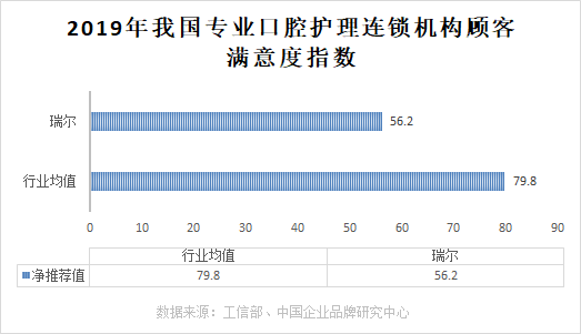 另據(jù)工信部、中國企業(yè)品牌研究中心數(shù)據(jù)顯示,2019年我國專業(yè)口腔護(hù)理連鎖機(jī)構(gòu)顧客滿意度指數(shù)行業(yè)均值為79.8,但對標(biāo)中高端用戶的瑞爾卻未達(dá)及格線。