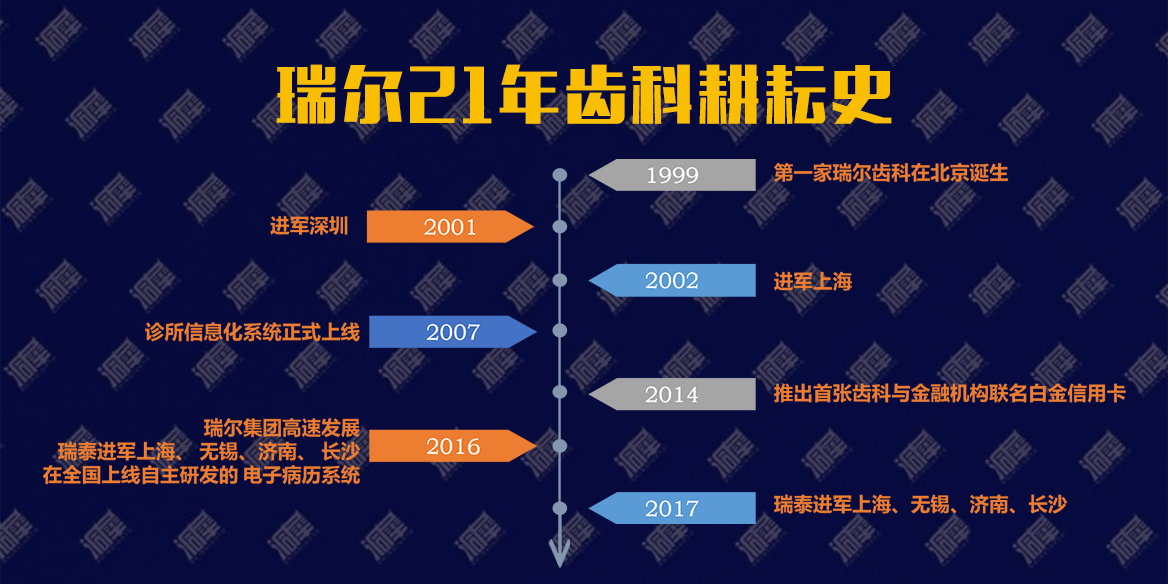 看上去是齒科朋友圈社交達(dá)人+市場潮人,卻被朋友們笑說是“慢動作”人設(shè)。畢竟瑞爾的拓展之路,前十年確實(shí)都有些逼瘋“急性子”:僅在北京、上海、深圳三個城市有所布局,十家診所而已。2010年,瑞爾開始對外融資,五年時間融到C輪,有資本“獎學(xué)金”在手的其他品牌,大多選擇了線下鋪店,搶占市場。瑞爾卻不急于追求開店速度,反而打造“第二曲線”——創(chuàng)立瑞泰口腔,將齒科服務(wù)網(wǎng)絡(luò)下沉至二線中端用戶。