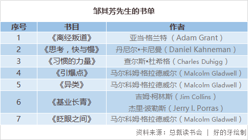 “學(xué)歷”是齒科行業(yè)里不錯的用戶心智認(rèn)知,一個人的認(rèn)知和他讀過的書,看過的文字,有很大的相關(guān)性。臺灣奧美曾經(jīng)有則作品《我害怕愛讀書的人》,很。推薦大家看看。我們簡單列舉了鄒的書單,大家可以自行腦補(bǔ)一下鄒先生的認(rèn)知組成的某一部分,多少留有一些卡尼曼、格拉德威爾的影子。