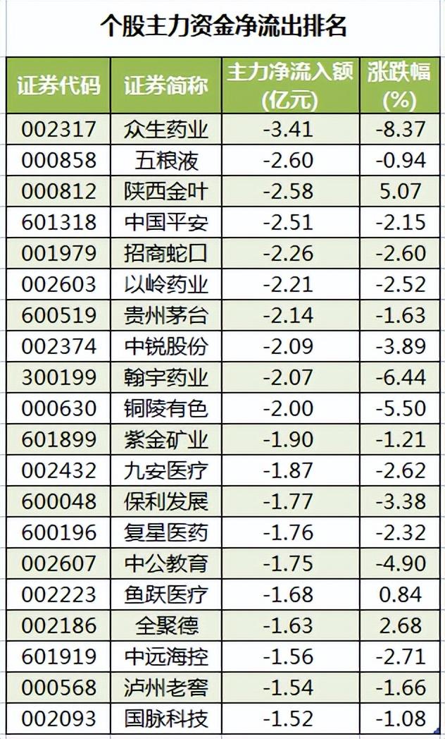 此外,2603只個(gè)股被主力資金凈賣出,其中,37股被主力資金凈賣出超1億元。