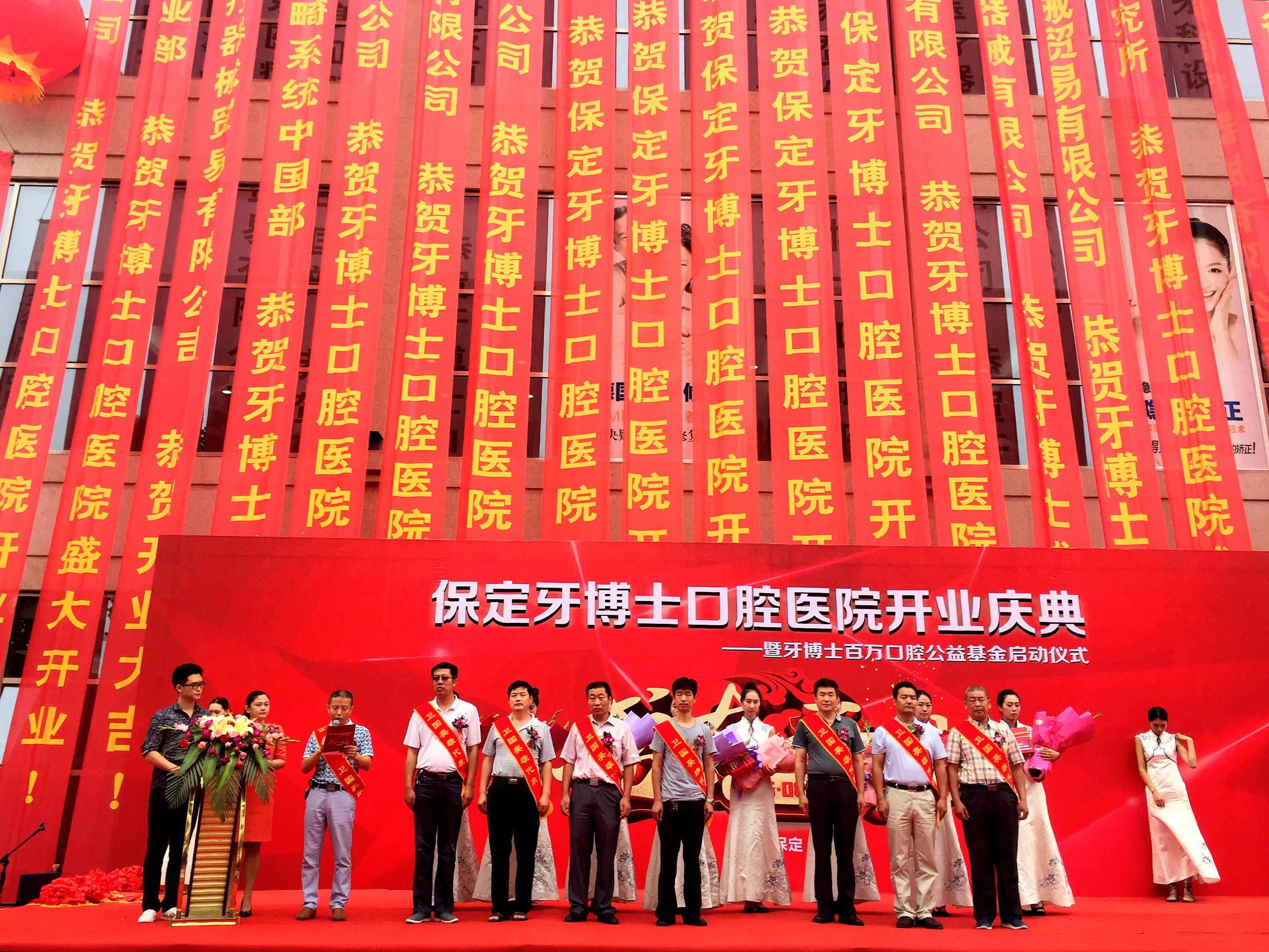 2016年8月,保定牙博士口腔醫(yī)院開(kāi)業(yè),并舉行“紅色八月,全市尋找百名衛(wèi)國(guó)英雄”公益活動(dòng),為每位衛(wèi)國(guó)英雄送上價(jià)值2000元口腔基金及節(jié)日禮物。
