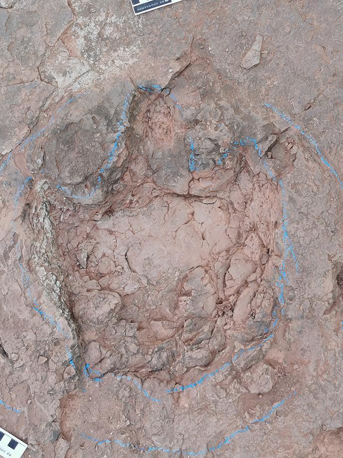這是中國發(fā)現(xiàn)大型恐爪龍類的行跡,也是目前中國范圍內(nèi)發(fā)現(xiàn)的大的恐爪龍類足跡。