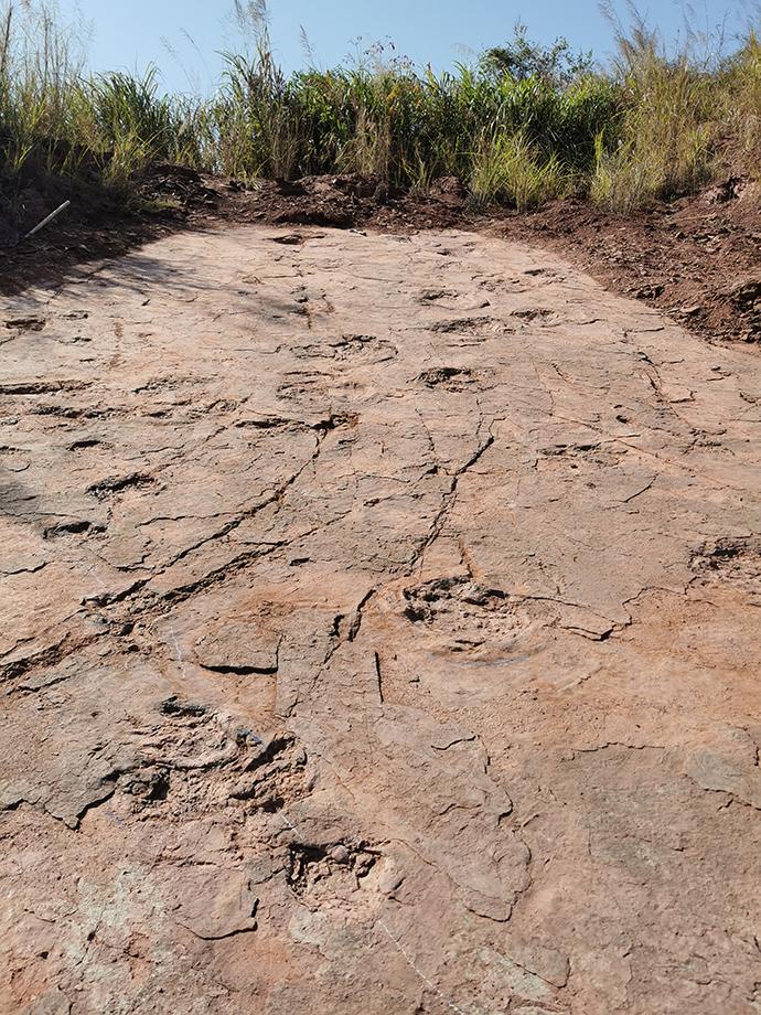 層面的恐龍足跡密集