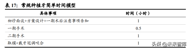 常規(guī)種植業(yè)務(wù)分多期進(jìn)行,對(duì)醫(yī)生種植經(jīng)驗(yàn)、交流技巧、時(shí)間等方面具有 更高要求。常規(guī)自由手種植的精度、修復(fù)果與主治醫(yī)生的經(jīng)驗(yàn)具有強(qiáng)相 關(guān)性,這是醫(yī)生的核心競(jìng)爭(zhēng)力所在,也是醫(yī)療機(jī)構(gòu)的競(jìng)爭(zhēng)優(yōu)勢(shì)來源。 我們認(rèn)為,常規(guī)種植流程下,患者需要就診至少四次(基臺(tái)三次), 期間主治醫(yī)生對(duì)醫(yī)療機(jī)構(gòu)的品牌維護(hù)、患者調(diào)節(jié)果具有決定作用。頭部 口腔醫(yī)療服務(wù)機(jī)構(gòu)同時(shí)兼具高質(zhì)量醫(yī)生團(tuán)隊(duì)+優(yōu)質(zhì)服務(wù)的優(yōu)勢(shì),未來集采 政策落地后,有望搶占更多政策帶動(dòng)的增量市場(chǎng)份額。